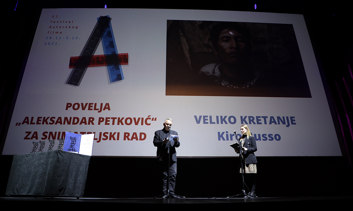 Za najbolju režiju nagrađen je reditelj Kiro Ruso za film „Veliko kretanje“. Autor se za dodeljenu nagradu zahvalio video porukom.