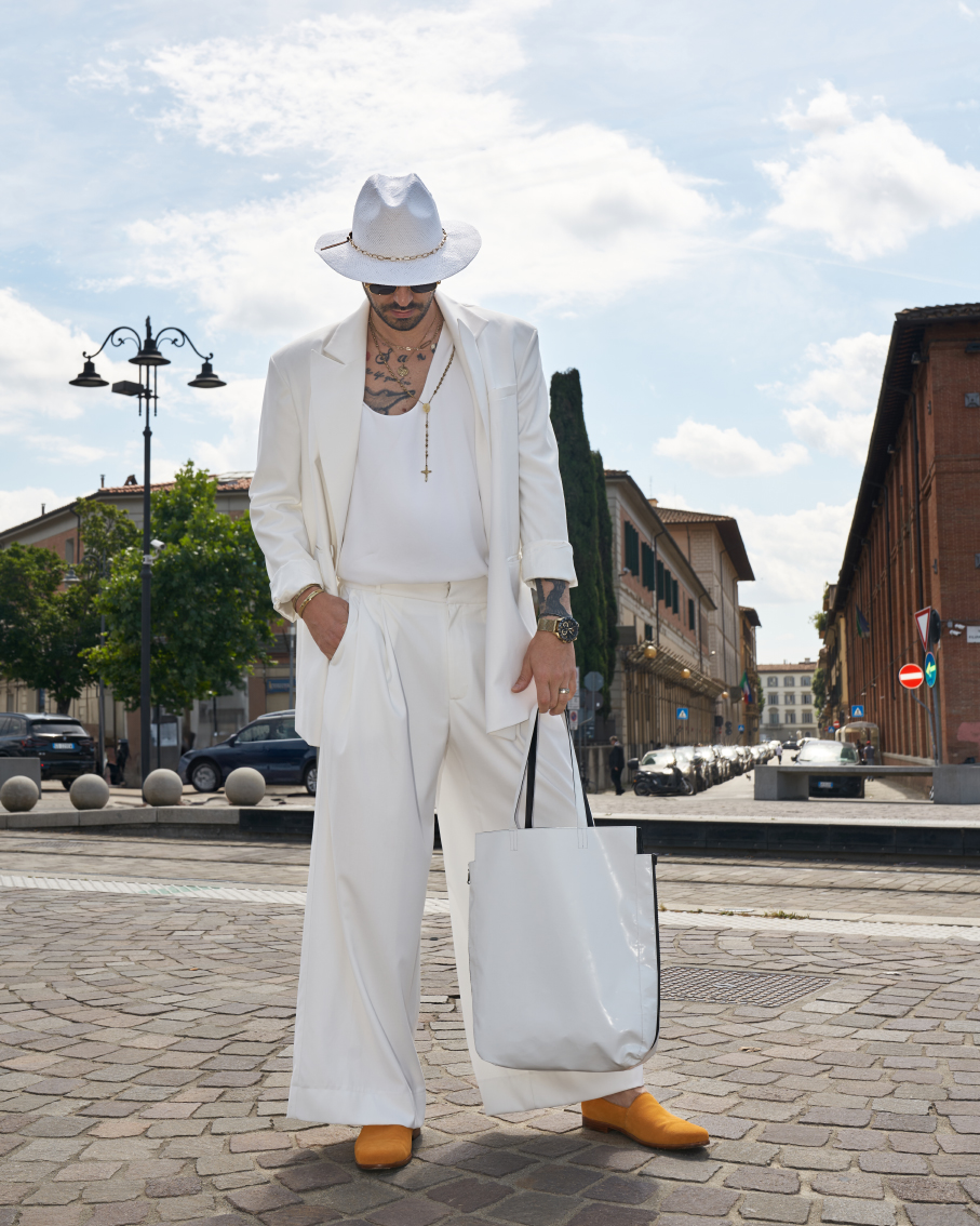 Poznati modni novinar i znalac sa adresom u Milanu – Josip Grabovac povodom 10 godina jubileja Sisters Code & Friends nosio je elegantno belo odelo na najpoznatijem sajmu muške mode “ Pitti Immagine Uomo “ u Firenci.Sisters Code je posebno dizajnirao odelo u kolaboraciji sa talentovanom dizajnerkom Aleksandrom Morgun kojoj je pripala velika čast da izradi odelo po Josipovom dizajnu.
