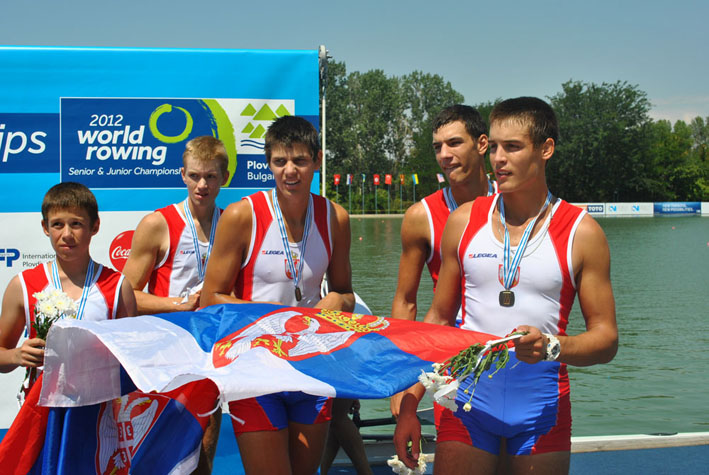 Srbija je došla do prve medalje na Svetskom prvenstvu za juniore i Svetskom prvenstvu za seniore u Plovdivu. Pretposlednjeg dana šampionata juniorski četverac sa kormilarom Bojan Došljak, Aleksandar Marinkovski, Aleksandar Beđik, Aleksa Stanković, kormilar Mateja Jošić u subotu, 18. avgusta, osvojio je bronzanu medalju čime je zaokružio briljantnu sezonu u kojoj je početkom juna na Bledu superiorno postao evropski prvak. Naši momci su u finalu ove discipline s vremenom 6:30.02 zauzeli treće mesto iza posada Novog Zelanda (6:26.67) i Nemačke (6:28.92). Daleko iza pobedničke trojke kroz cilj su prošli čamci Ukrajine (6:37:59), Italije (6:39.22) i Francuske (6:40.55).