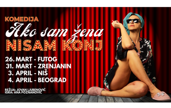 Predstava rekordne gledanosti ,,Ako sam žena nisam konj" posle turneje koja je obuhvatila Evropu, Australiju i Kanadu, i nakon rasprodatih igranja u Melburnu, Sidneju, Cirihu, Torontu, Zagrebu, ponovo kod kuće. Posle Futoga 26. marta, Zrenjanina 31. marta, [...]