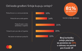 Broj korisnika onlajn plaćanja povećao se za 15% u odnosu na period pre izbijanja pandemije Covid-19, pokazalo je ovogodišnje MasterIndex Srbija istraživanje. Onlajn plaćanja koristi 81% ispitanika, od čega 10% plaća onlajn makar jednom nedeljno, dok 45% koristi onlajn plaćanja [...]