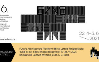 Od 17. do 26. septembra 2021. godine, Beogradska internacionalna nedelja arhitekture – BINA realizuje desetodnevnu filmsku školu u okviru međunarodne platforme Future Architecture. Ovogodišnji program platforme nosi naziv “Pejsaži brige/ Landscapes of Care” a filmska škola BINE “Kad bi ovi [...]