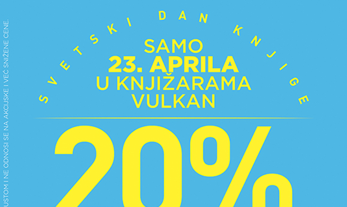 Ljubitelji pisane reči nestrpljivo iščekuju Svetski dan knjige, a Vulkan izdavaštvo i ove godine želi da ih obraduje i učini taj dan posebnim. Upravo zbog toga, praznik knjige obeležavamo i u Vulkan knjižarama! Samo 23. aprila kupovinom izdanja Vulkan izdavaštva u svim Vulkan knjižarama ostvarujete20% popusta. Popust se ne sabira [...]