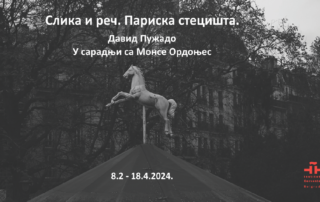 Izložba fotografija Davida Pužada „Slika i reč. Pariska stecišta“ biće otvorena u četvrtak, 8. februara u 19 časova u galeriji Instituta Servantes u Beogradu. Elegične, crno-bele prizore francuske prestonice, koje je svojim objektivom zabeležio David Pužado, prate stihovi pesnika i [...]