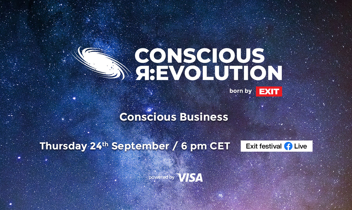 U četvrtak, 24. septembra, u 18h CET u direktnom prenosu na zvaničnoj Fejsbuk stranici EXIT festivala biće uživo emitovan šesti po redu panel u okviru Exitove platforme „R:evolucija svesti“, pod nazivom „Svesno poslovanje“ („Conscious Business“). Učesnici panela biće: Muhamed Ismael [...]