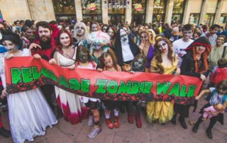 Više stotina građana prerušenih u zombije juče je prošetalo centralnim beogradskim ulicama u Zombi šetnji koja prethodi Festivalu srpskog filma fantastike čiji je integralni deo, istovremeno promovišući jedan od sastavnih delova ove vrste filmova – šminkanje i izradu vizuelnih efekata. [...]