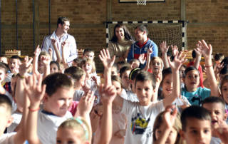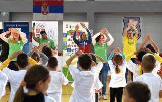 Milica Mandić, Damir Mikec i Aleksandar Kukolj na času fizičkog sa prvacima