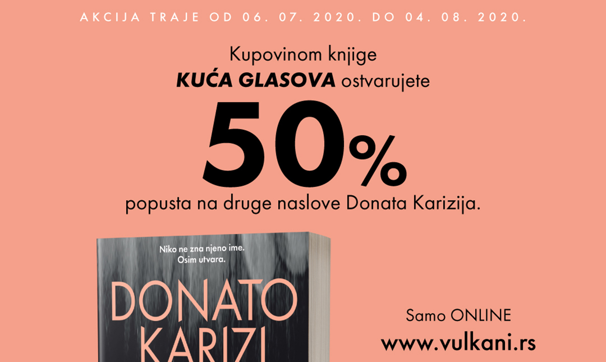 Fanovi Donata Karizija, majstora savremenih trilera, s velikim nestrpljenjem očekuju njegov najnoviji roman Kuća glasova, a mi smo se potrudili da ih dodatno obradujemo! Od danas, 2. jula, do nedelje, 5. jula, samo na sajtu www.vulkani.rs moći ćete da naručite knjigu i ostvarite [...]