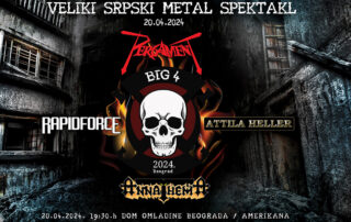 Pod sloganom Big 4, naši najpoznatiji heavy metal bendovi održaće spektakularne koncerte u Amerikani Doma Omladine u Beogradu, dana 20.aprila s početkom u 19:30h. Iako za sobom imaju višedecenijske karijere, biće ovo prvi put da Annathema, Pergament, Rapid Force i [...]