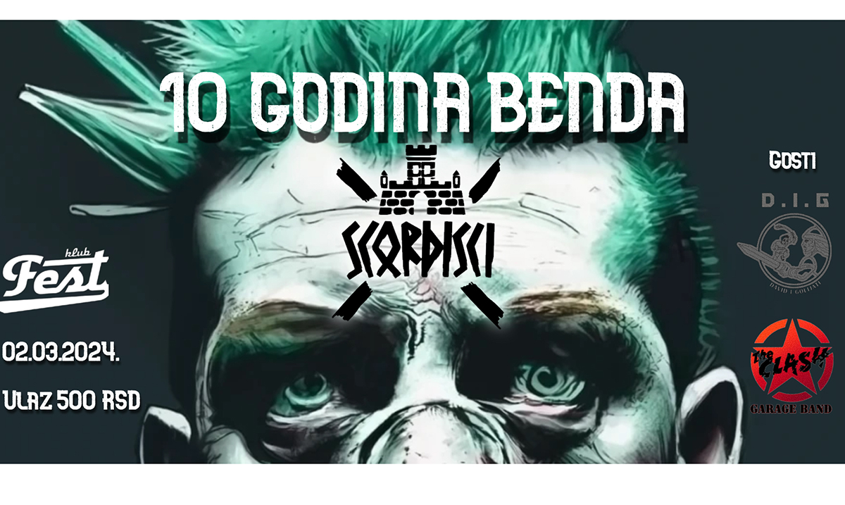 Dragi ljubitelji punk muzike, zapalite plamen strasti i bunta jer se bliži događaj koji ne smete propustiti - 10 godina postojanja benda Scordisci! Pripremite se za veče koje će odzvanjati snagom, energijom i autentičnim zvukom koji obeležava punk scenu. Datum: 02.mart 2024. [...]