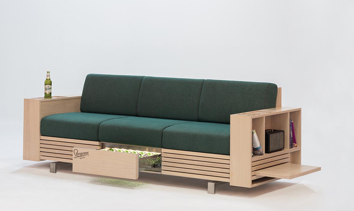 „Staropramen sofa“ poseduje niz dodataka koji je čine jedinstvenom za životni prostor. Pored toga što zadržava udobnost klasičnog troseda, ona poseduje brojne dadatke koje su korisnicima na dohvat ruke. Ugrađeni frižider koji može da primi čak 14 boca Staropramen piva, utičnice za punjače, implementirani bluetooth zvučnik, police za knjige i časopise.