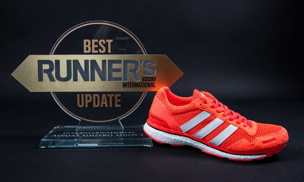 adidas Running je nagrađen uvaženom nagradom za najbolje unapređenje modela od strane Runner’s World International (Runner’s World International Best Update Award) zahvaljujući adizero adios 3.0 patici – najnovijoj verziji adizero adios 2.0. Ovaj model opisan je kao „lagana, brza patika sa dobrim odrazom“, a napravljen je revolucionarnom BOOST™ tehnologijom sa delom od čvrste pene koja daje energiju i pruža dodatnu stabilnost. Kombinovana sa poboljšanjima Continental RubberTM đona, microfit gornjišta i torzionog sistema, patika je dobila pohvalu Runner’s World-a koji je potvrdio da je ovo poboljšanje „još bolje“ nego prethodne adizero adios verzije.