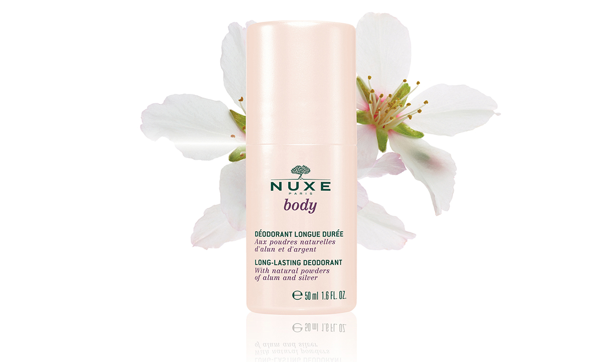 NUXE BODY Dezodorans s dugotrajnim delovanjem svojom čarobnom kombinacijom dva 100% prirodna mineralna pudera srebra i aluminijuma osigurava dugotrajnu zaštitu od neprijatnih mirisa i pomaže u smanjenju znojenja. Njegova vrlo nežna formula prilagođena je svim tipovima kože, čak i vrlo osetljivoj, a prepoznatljivo zanosan miris NUXE BODY linije čini ga jednostavno neodoljivim.