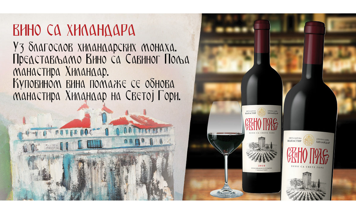 Vrhunsko kvalitetno vino u proizvodnji manastira Hilandar „Savino Polje“ je novost u ponudi RODA i MERCATOR prodavnica. Kupovinom ovog pića, koje je rezultat odlično pozicioniranih vinograda, potrošači će direktno dati doprinos obnovi manastira Hilandar na Svetoj Gori.