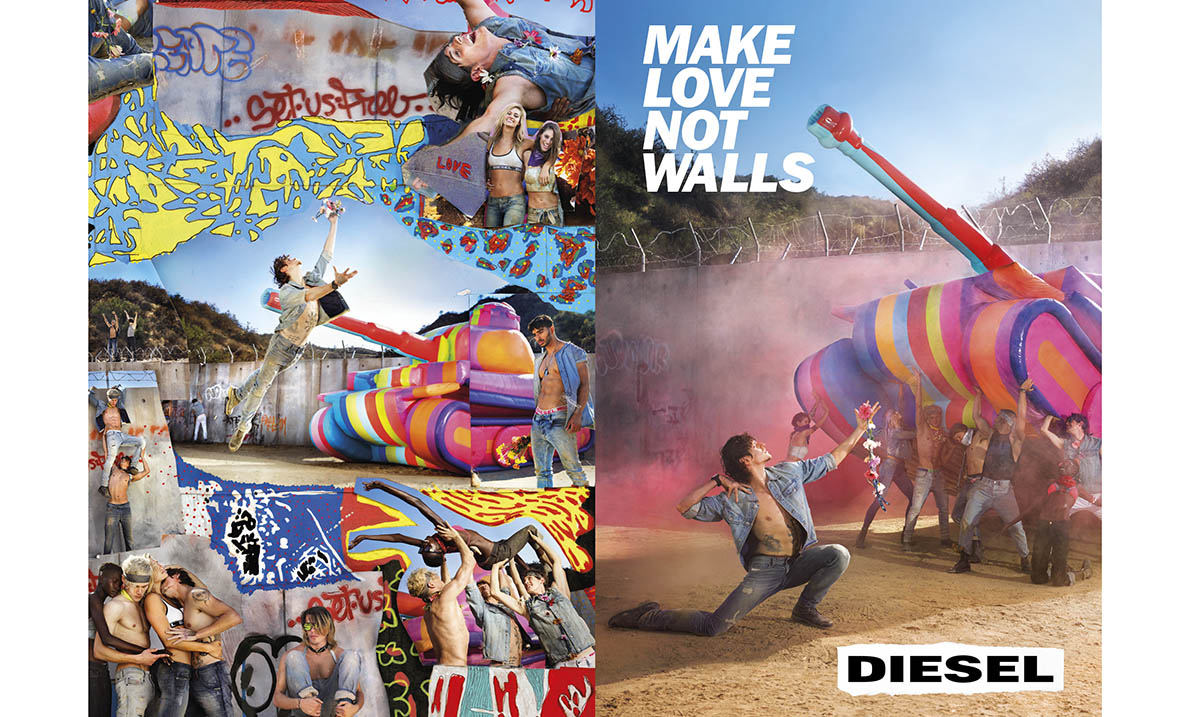 “Od naše David LaChapelle kampanje koja prikazuje dvojicu mornara u strastvenom poljupcu 1995. godine pa do danas, DIESEL je uvek pomerao granice i to nastavlja i danas. Potrebno je imati muda da biste rušili granice u trenutku kada teror ponovo deli ljudi dizanjem zidova širom sveta“, izjavio je Renzo Rosso, osnivač Diesel-a.