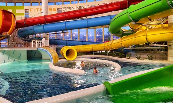 Za bezbrižan užitak u svakoj od avantura, pobrinuće se stručno osoblje hotela, a gosti između ostalog mogu da uživaju u atrakcijama kao što su, najduži vodeni tobogan u Evropi koji funkcioniše tokom cele godine (272 m dug tobogan anakonda i 223 m dug tobogan – kamikaza koji polazi iz tornja visokog 30 m), pored toga, gostima je na raspolaganju još 7 tobogana koji startuju sa galerijskog sprata iz porodične velnes-sekcije.