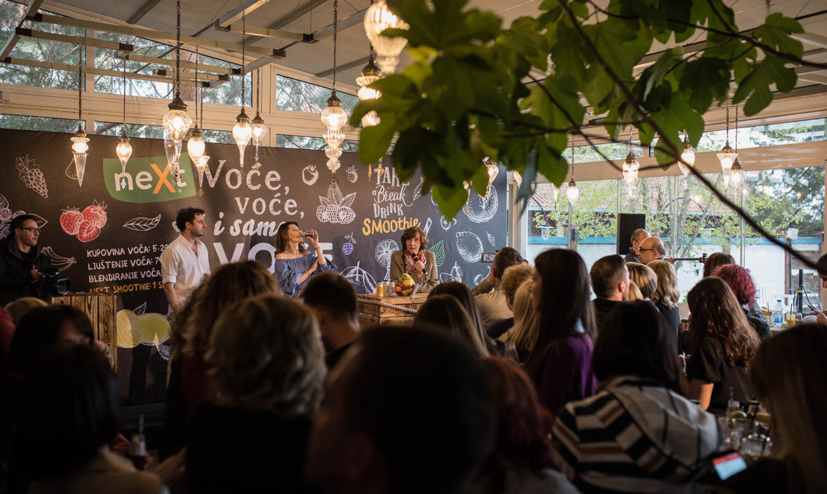 neXt Smoothie su među prvima imali prilike da probaju brojni gosti na događaju u restoranu „Pasent“ u Sremskim Karlovcima. Događaj organizovan u idiličnom ambijentu kraj Dunava okupio je veliki broj predstavnika medija, kao i popularne blogere i Instagramere, koji su uživali u bogatom zabavnom sadržaju za koji su između ostalog bili zaduženi i glumci Nikola Đuričko i Tamara Dragičević.