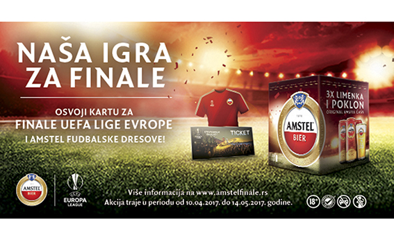 Amstel drugu godinu zaredom pruža jedinstveno iskustvo za sve ljubitelje piva i fudbala. Kao ponosni sponzor Lige Evrope, Amstel pokreće aktivaciju „Naša igra za finale“ koja najbolje učesnike vodi u Švedsku, na finale zakazano za 24. maj 2017. godine.