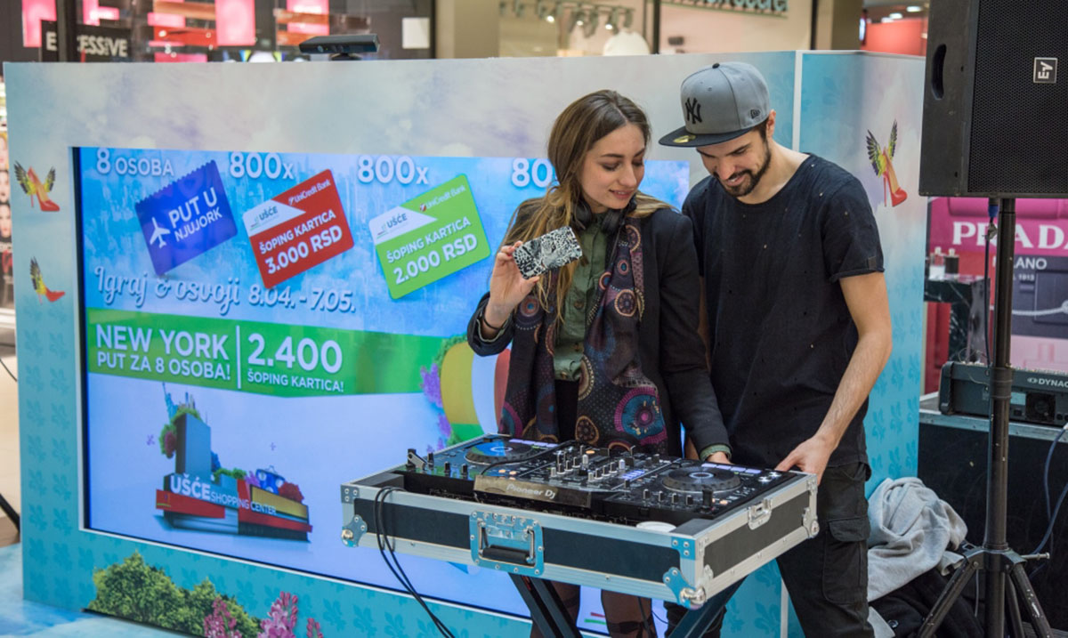 Spektakularni nastup poznatih di-džejeva Nade Dimitrijević i Danijela Čehranova, podigao je sinoć na noge posetioce UŠĆE Shopping Centera, koji su imali priliku da uživaju u nesvakidašnjoj rođendanskoj žurci u čast proslave 8. rođendana Centra.