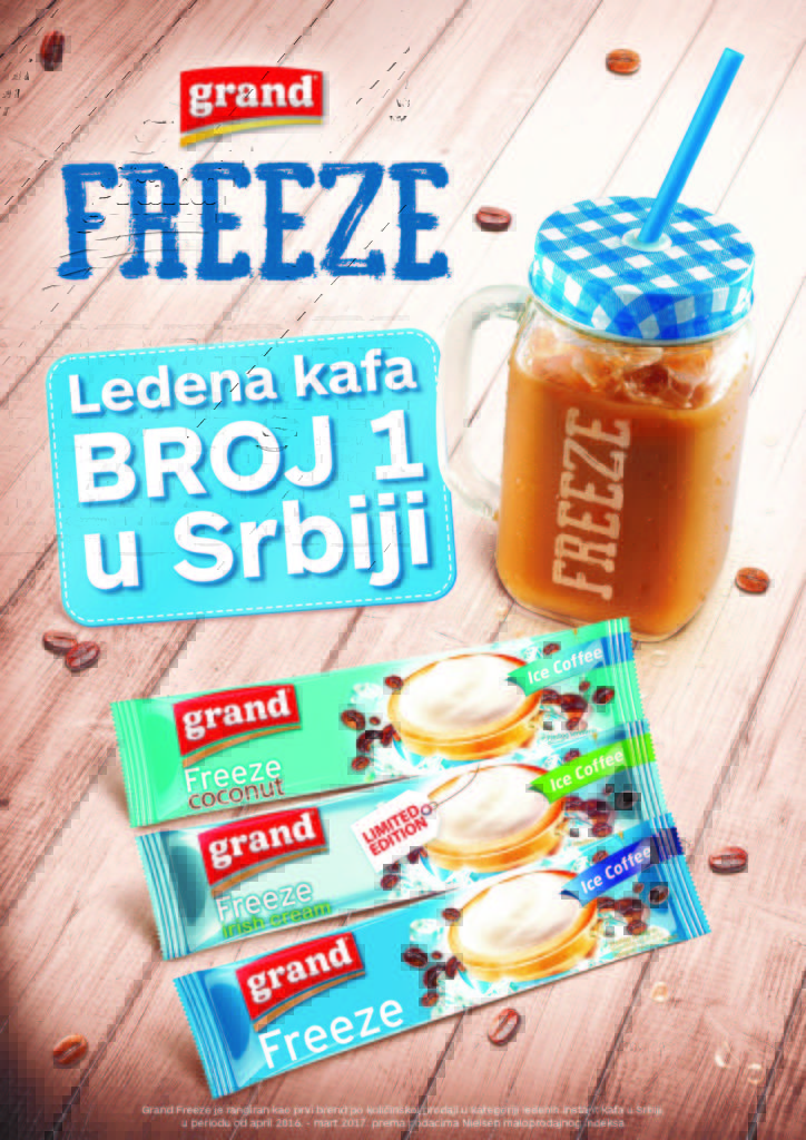 Znajte i to da niste pogrešili ukoliko ste zamislili upravo Ledenu Grand Freeze kafu. Grand Freeze sa svojim različitim neodoljivim ukusima postala je ledena kafa broj jedan u Srbiji. *