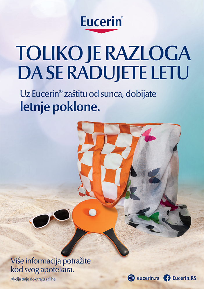 Jednom rečju, uz preparate iz Eucerin®linije za zaštitu od sunca radosno i bezbrižno leto, i za decu i za odrasle, može da počne! Tim pre što vas uz kupovinu iz Eucerin® preparata za zaštitu od sunca sada u Eucerin® partner apotekama očekuju atraktivni pokloni! Ponuda traje dok traju zalihe. Ukoliko već nemate svoj omiljeni Eucerin® preparat za zaštitu od sunca, posavetujete se s apotekarom.