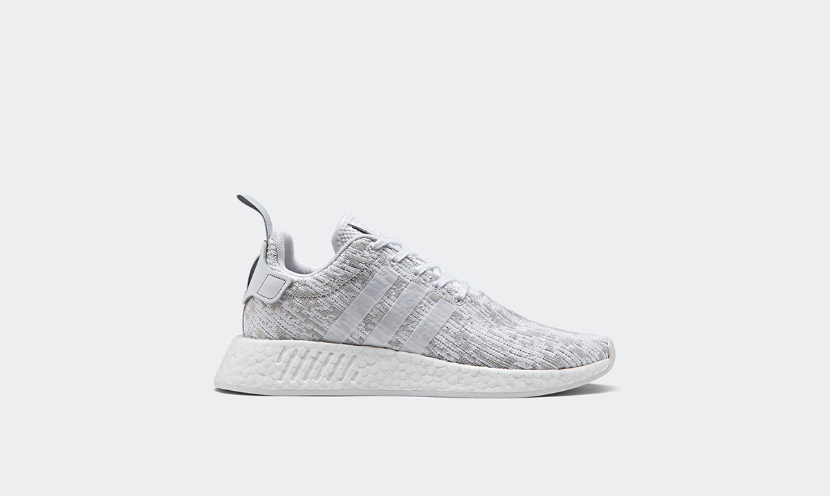Gornjište NMD_R2 modela napravljeno je od rastegljivog materijala koji omogućava nozi da „diše“ i prošareno je zanimljivim motivima bele boje. Izgled je upotpunjen nubuck delom koji se nalazi na sredini patike, kao i kožnim ojačanjem za petu i etiketom koji su zaštitni znak NMD modela. Pertle u istim tonovima boja i čarapa patike od meke kože dodatno doprinose jedinstvenom izgledu. Đon je napravljen korišćenjem NMD BOOST tehnologije sa NMD_R2 asimetričnom EVA penom koja je ubačena na sredini. Rezultat je prepoznatljiva adidas dinamična silueta.