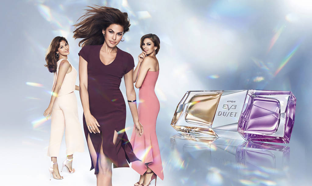Poznata po svojoj mogućnosti jednostavnog transformisanja kroz različite uloge, talentovana i harizmatična holivudska glumica Eva Mendez bila je savršen izbor za zaštitno lice novog Avon parfema. Glumica, majka dvoje dece, dizajnerka i preduzetnica, idealan je predstavnik savremene žene, a time i jedinstvenog Eve Duet-a, koga čine dva jedinstvena mirisa u savršenoj harmoniji. „Pravo je zadovoljstvo raditi sa kompanijom koja toliko godina poštuje i razume žene. Volim da budem kreativna i eksperimentišem sa modom i šminkom, i zato je mogućnost da se slobodno izrazim i proslavim svoju individualnost kroz miris veoma zabavna. Moje raspoloženje se menja u toku jednog dana, verujem da je tako kod svake žene i zato je Eve Duet pravi izbor jer ima snagu da to i pokaže“ – izjavila je Eva Mendez.