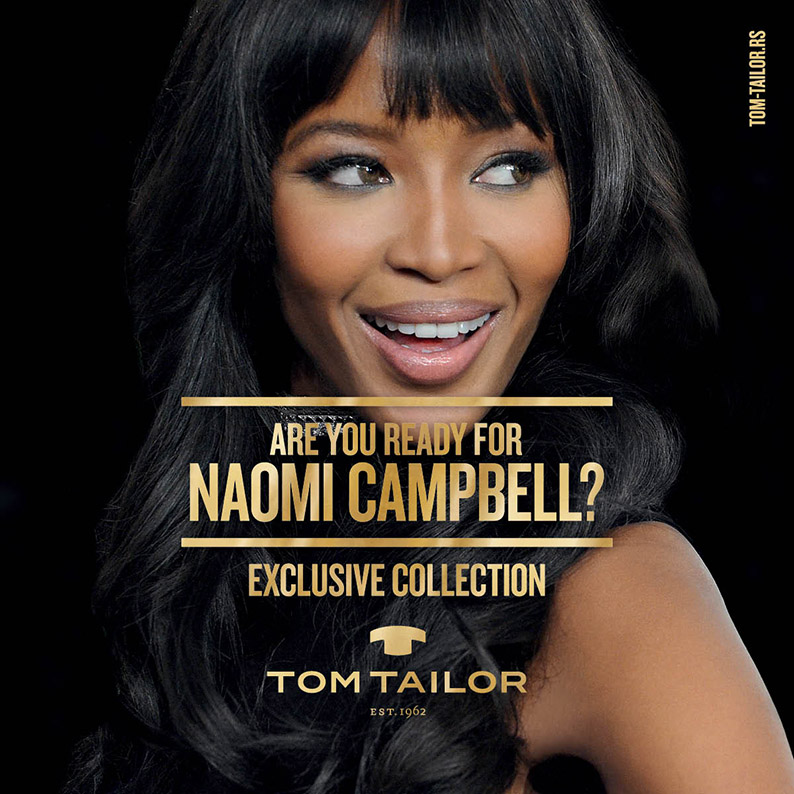 Modna ikona Naomi Campbell je u modni brend TOM TAILOR, svojim iskustvom i modnim stilom, unela svežinu i smelost. Odećom koja je nastala u saradnji sa njom, TOM TAILOR postavlja nove trendove i pokazuje svoje pravo modno lice. Sve će to biti još jasnije u modnoj sezoni koja dolazi 2018. godine.
