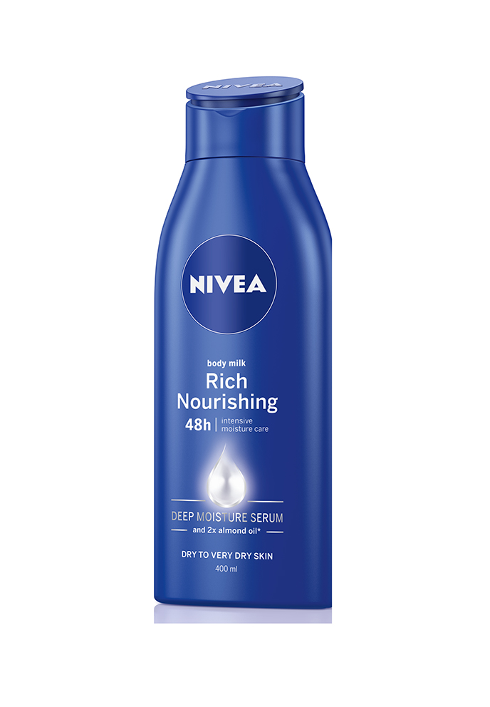 Unapređena formula NIVEA Rich Nourishing mleka za telo sada sadrži dvostruko više prirodnog bademovog ulja u odnosu na prethodnu i pruža najbolju negu. Ulje, koje se dobija iz zrelog jezgra slatkog badema, ima negujuća svojstva koja čine kožu neverovatno mekom i sadrži visoku količinu nezasićenih masnih kiselina i hranjive linolne kiseline. NIVEA Rich Nourishing mleko za telo je najbolja NIVEA nega za suvu i veoma suvu kožu i čini je primetno glatkom već nakon prvog nanošenja.
