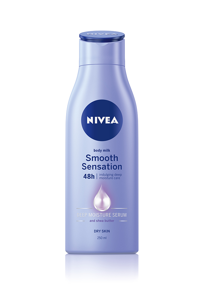 NIVEA Smooth Sensation mleko za telo čini suvu kožu predivno glatkom. Sadrži ši maslac i ima hranjiva svojstva. Zahvaljujući unapređenoj formuli koju koža brzo upija, gladak osećaj traje čitavog dana. NIVEA Express Hydration losion za telo za normalnu kožu sa ultra laganom formulom obogaćen je morskim mineralima i čini kožu mekom bez osećaja masnoće.