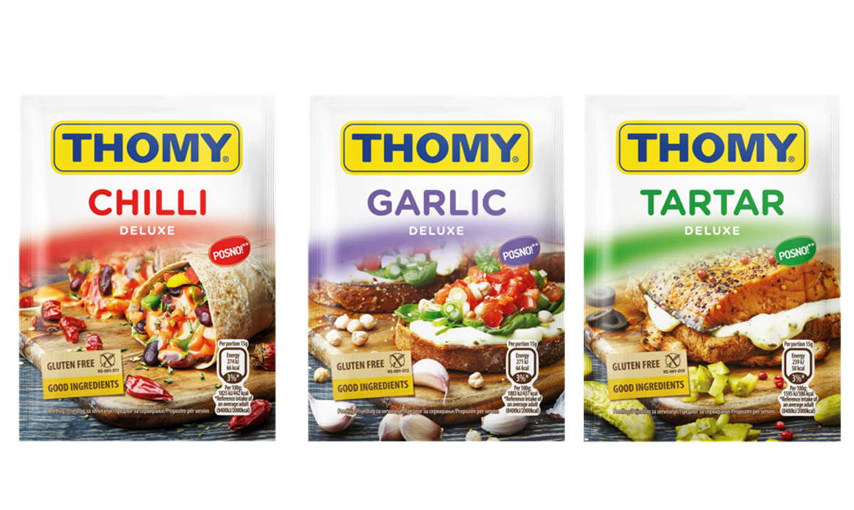 Kompanija Nestlé proširila je svoj kulinarski asortiman THOMY soseva sa tri nova proizvoda – THOMY majonezni sos sa kiselim krastavčićima, sa belim lukom i sa čilijem – koji su bez glutena i napravljeni od pažljivo odabranih sastojaka, zaslužnih za prepoznatljivu teksturu i bogat ukus THOMY-ja. Ljubitelje C supa razveseliće dva nova proizvoda – Pileća supa sa knedlicama sa mesom i Povrtna supa sa griz knedlama sa mekinjama i spanaćem.
