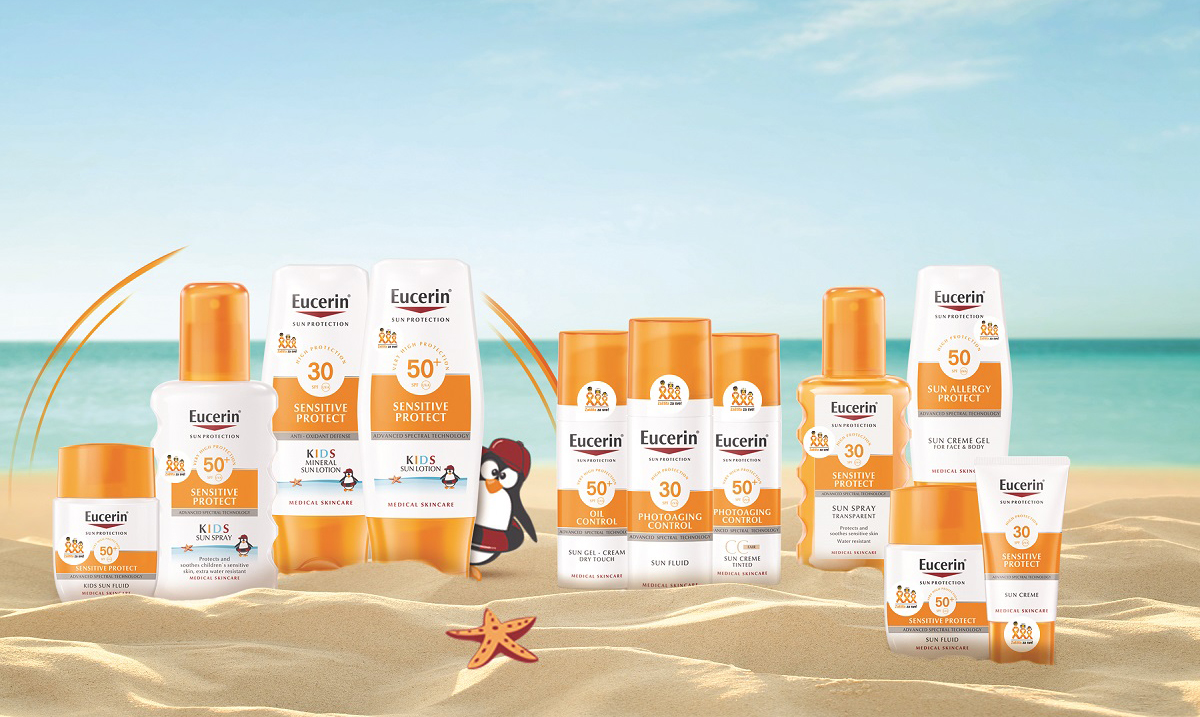 Posebnu pažnju posvetite izboru preparata za zaštitu dečje kože, jer dečja koža je tanja, osetljivija i nema dovoljno izgrađene odbrambene mehanizme. Eucerin® preparati za zaštitu od sunca za decu pored toga što obezbeđuju pouzdanu UV zaštitu i bilošku zaštitu kože, sadrže vitamin E, koji jača odbrambene mehanizme kože, i dekspantenol, koji umiruje izazetno osetljivu kožu beba. Bez parabena, boja i parfema i vodootporni, klinički dokazano ovi preparati odgovaraju čak i deci sa atopijskim dermatitisom. Izaberite Eucerin®Losion za zaštitu osetljive dečje kože od sunca SPF 50+ , Eucerin®Losion za zaštitu osetljive dečje kože od sunca sa mikropigmentima SPF 30 , Eucerin®Sprej za zaštitu osetljive dečje kože od sunca SPF 50+ ili novo džepno pakovanje Eucerin® Fluida za zaštitu osetljive dečje kože od sunca SPF50+. Eucerin®Losion za zaštitu od sunca za decu SPF 50+ i Eucerin®Sprej za zaštitu od sunca za decu SPF 50+, sadrže formulu za zaštitu od mrlja, koja će umanjiti i ovu roditeljsku brigu.