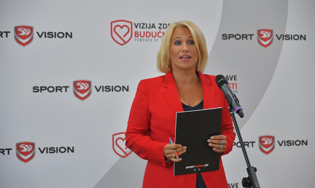 „U ime kompanije Sport Vision želim da zahvalim svima koji su danas ovde i koji su dosli da podrže, za sve nas veoma važan projekat VIZIJA ZDRAVE BUDUĆNOSTI. Svi smo svesni činjenice koliko teško obnoviti infrastrukturu, koliko je pomoći potrebno svima u svim delovima zemlje. Niko sam ne može sve. Zato smo se pridružili da pomognemo, ali i da damo primer i drugim domaćim kompanijama i da ih pozovemo da nam se priključe i pomognu društvu u svako u sferi svog poslovanja“, istakla je Anja Dmitrović, direktorka marketinga kompanije Sport Vision.