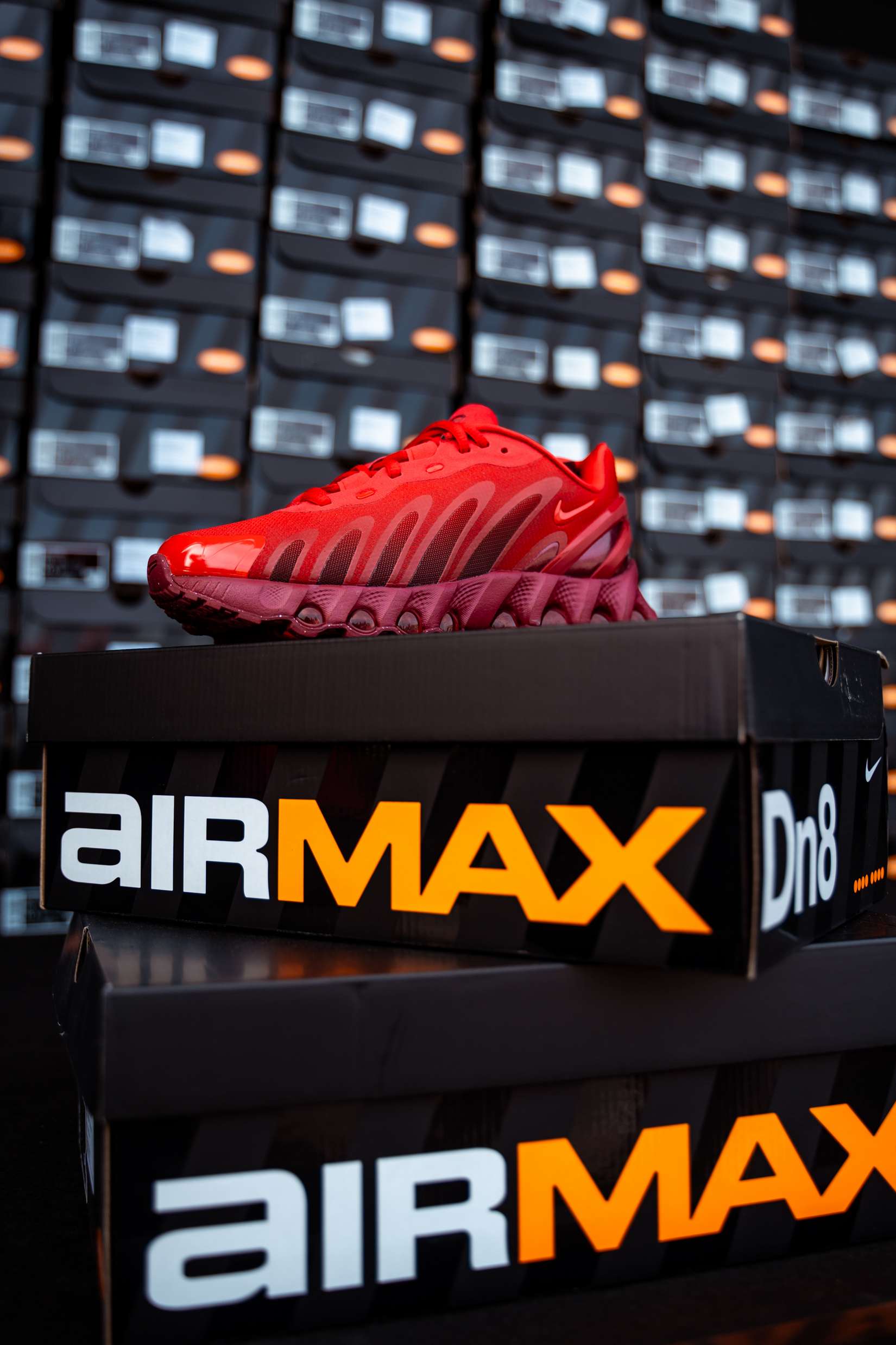 Slično svom prethodniku, Air Max Dn, ovaj novi model koristi dvostruko pritisnute vazdušne jedinice koje reaguju na pritisak pri svakom koraku, pružajući nestvarnu amortizaciju, tok, osećaj i pokret. Air Max DN8 unapređuje ovu inovaciju kroz dve vazdušne jedinice i osam cevi koje stvaraju konstantan, pritisnut tok od pete do prstiju – pomerajući granice onoga što je moguće sa Air tehnologijom.