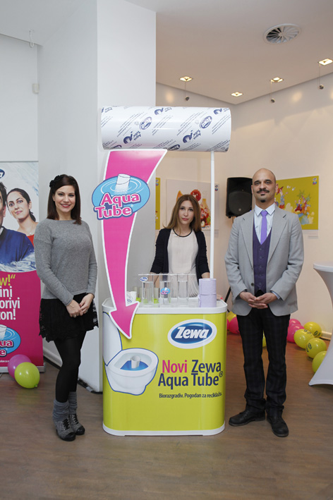 Zewa Aqua Tube® je jedinstveni proizvod – u potpunosti biorazgradiv karton, pogodan za recikliranje. Kako bi se posebno istakla jedinstvenost ovog proizvoda, i predstavljanje u Srbiji je bilo jedinstveno u odnosu na ostala evropska tržišta – ovo je jedini događaj na kome su na zabavan način karikaturama dočarane scene iz svakodnevnog života. Popularni glumci, Ivan Jevtović i Sofija Juričan su u nekoliko komičnih skečeva dočarali razmirice između partnera i na slikovit način predstavili novi proizvod.