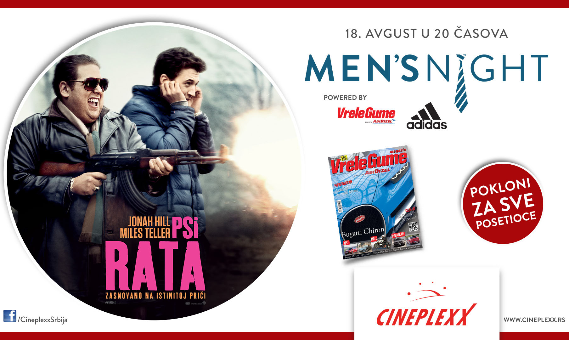 Pripadnike jačeg pola koji se odluče da sa drugarima pogledaju ovo ostvarenje u okviru Men`s night događaja, očekuje na poklon magazin Vrele Gume uz svaku kupljenu ulaznicu, dok najsrećnije ćemo obradovati sa Adidas poklon setom kozmetike.
