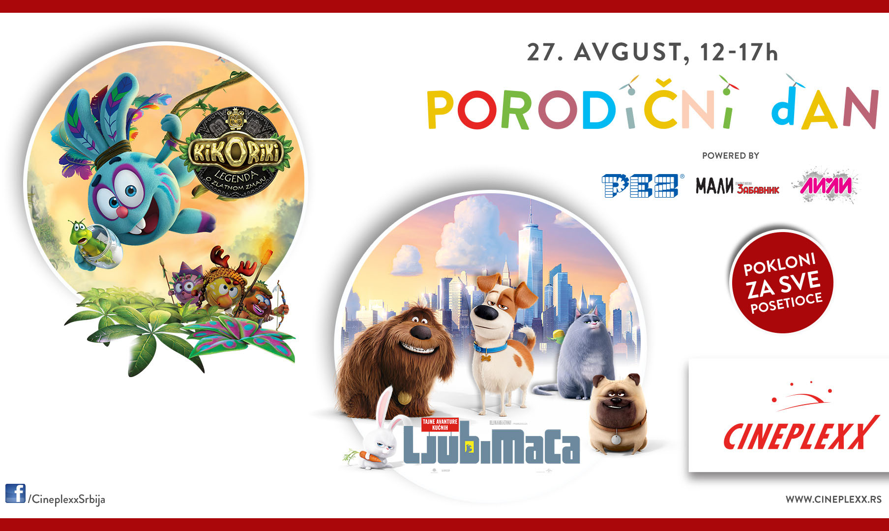 Proslavimo zajedno kraj letnjeg raspusta ove subote, 27. avgusta uz Porodični dan u bioskopima Cineplexx. U periodu od 12 do 17 časova, sve posetioce bioskopa Cineplexx Delta City, Kragujevac Plaza i UŠĆE Shopping Center očekuje bogat filmski program, pokloni iznenađenja i pregršt dodatnih aktivnosti.