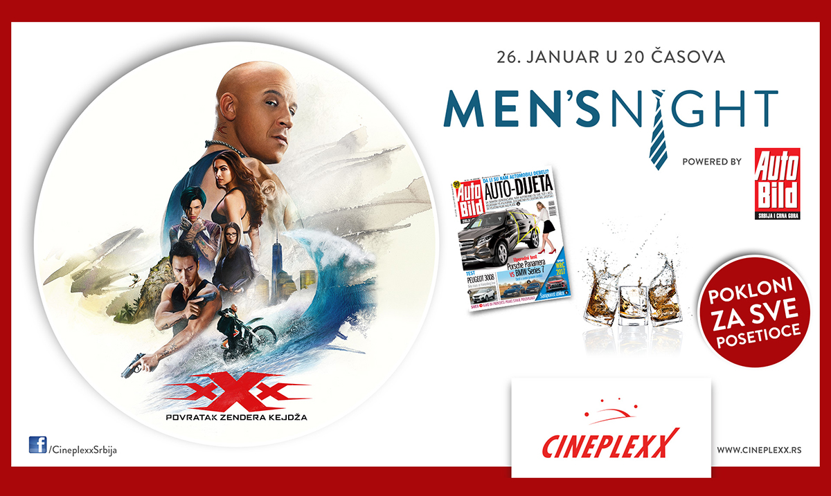 Men`s night događaj u bioskopima Cineplexx UŠĆE Shopping Center, Delta City, Kragujevac Plaza i Cineplexx Niš, uz prikazivanje filma „XXX – Povratak Zendera Kejdža“, održaće se u četvrtak, 26. januara, sa početkom u 20 časova.