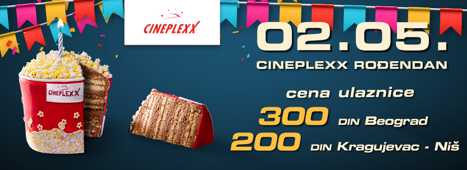 Rođendansko slavlje bioskopa Cineplexx u Srbiji zakazano je za utorak 2. maj, uz sjajnu ponudu za sve posetioce. Na svoj rođendan Cineplexx nagrađuje verne posetioce sa specijalnom cenom karte za sve projekcije, koja će u beogradskim bioskopima Cineplexx BIG Beograd, Cineplexx Delta City i UŠĆE Shopping Centar biti 300 dinara, dok će uCineplexx Kragujevac Plazi i Nišu karta biti 200 dinara! Ista cena ulaznice će važiti za 2D i 3D projekcije filmova.