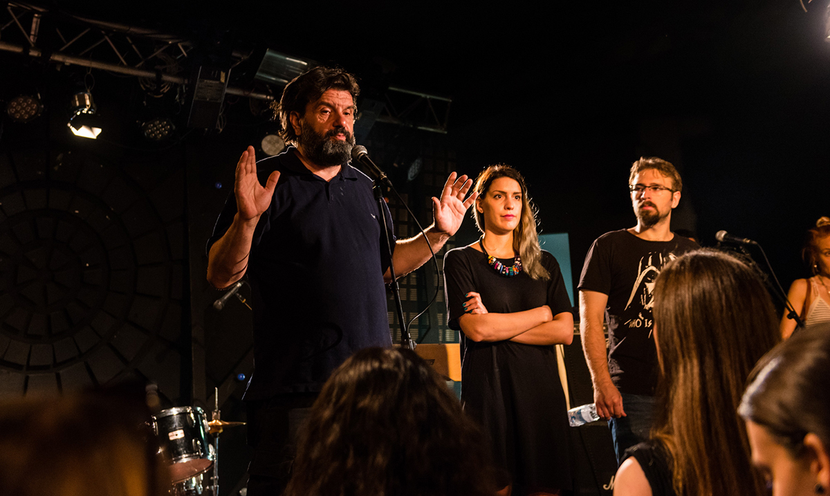 Srđan Gojković Gile, Zdenko Kolar, Marko Milivojević, Boris Bunjac i za ovu priliku pojačanje – Milorad Miki Ristić, nadahnuto su u Klubu DOB-a izveli novu verziju pesme “Ona to zna” pred publikom sačinjenom od 100-ak specijalno odabranih statista.