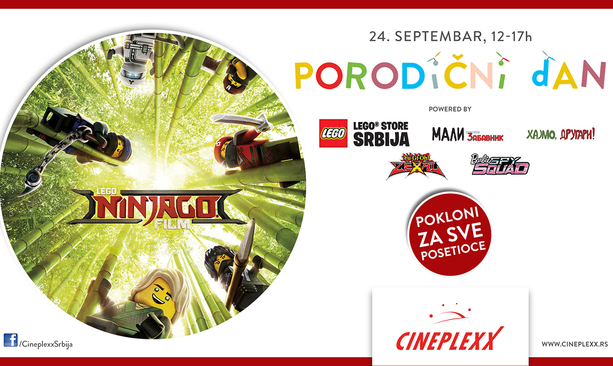 Mališani, da li ste spremni za novu uzbudljivu Lego Ninjago avanturu? Ukoliko je odgovor potvrdan, pripremite se za druženje u nedelju 24. septembra od 12 do 17 časova u bioskopima Cineplexx UŠĆE Shopping Center, Cineplexx Delta City, Cineplexx BIG Beograd, Cineplexx Kragujevac Plaza i Cineplexx Niš. Porodični dan uz najaktuelnije dečje filmove, mnoštvo poklona i zabave, čeka na vas!