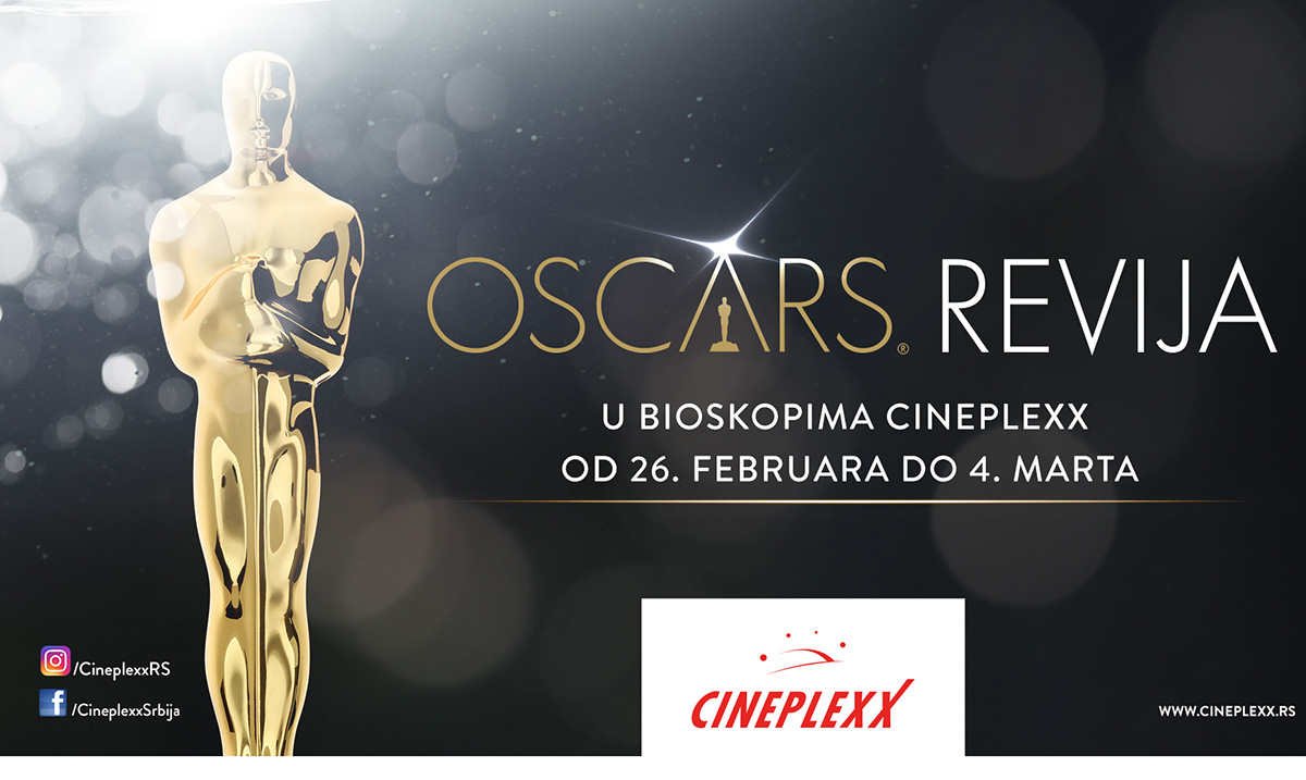 Ne propustite da na velikom platnu bioskopa Cineplexx UŠĆE Shopping Center, Cineplexx BIG Beograd, Cineplexx Kragujevac Plaza i Cineplexx Niš u periodu od 26. februara do 4. marta, pogledate svoje favorite za nagradu Oskar! U okviru revije filmova nominovanih za prestižnu nagradu, na bioskopskom platnu biće prikazano četrnaest filmova koji su u trci za ovogodišnjeg pobednika u nekoj od selekcija, u terminima od 19:00 i 21:30 časova svakog dana.