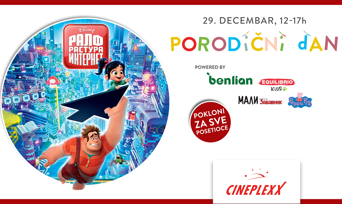 Iz studija Dizni i mašte reditelja Fila Džonstona i Riča Mura stiže sjajna animirana avantura! Razbijač Ralf u novoj misiji spašavanja igrice očekuje vas na Porodičnom danu u svim bioskopima Cineplexx u subotu 29. decembra od 12 do 17 časova! Uživajte u specijalnom programu inspirisanom glavnim junakom i poklonima* za sve mališane! Karte su u prodaji na blagajnama bioskopa.