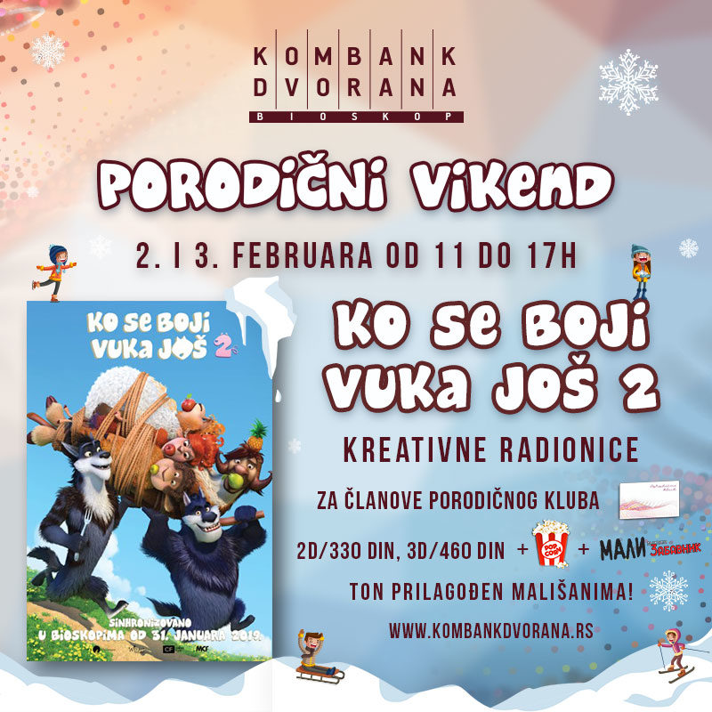 Glavni događaj biće premijera animirane avanture Ko se boji vuka još u subotu 02. februaru u 14h, a na bioskopskom platnu naći će se i popularni naslovi za decu: Eliot spašava Božić, Aladin i leteći ćilim i Ralf rastura Internet: Razbijač Ralf 2.