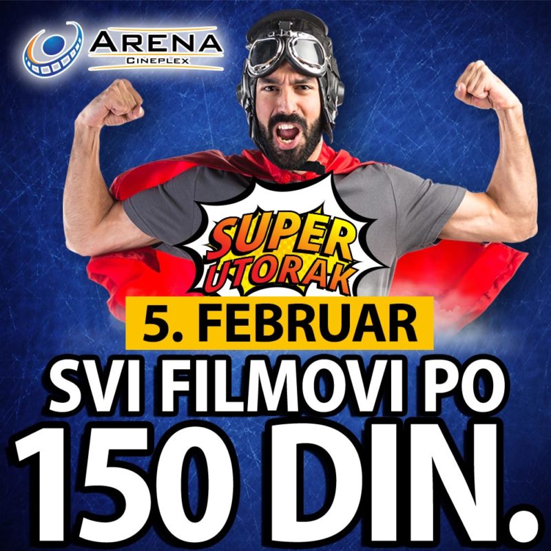 Beogradski bioskop Roda Cinplex i novosadski Arena Cineplex pripremili su za 5. februar akciju „Super utorak “. Tog dana cena ulaznica za sve filmove sa repertoara iznosiće 150 dinara!