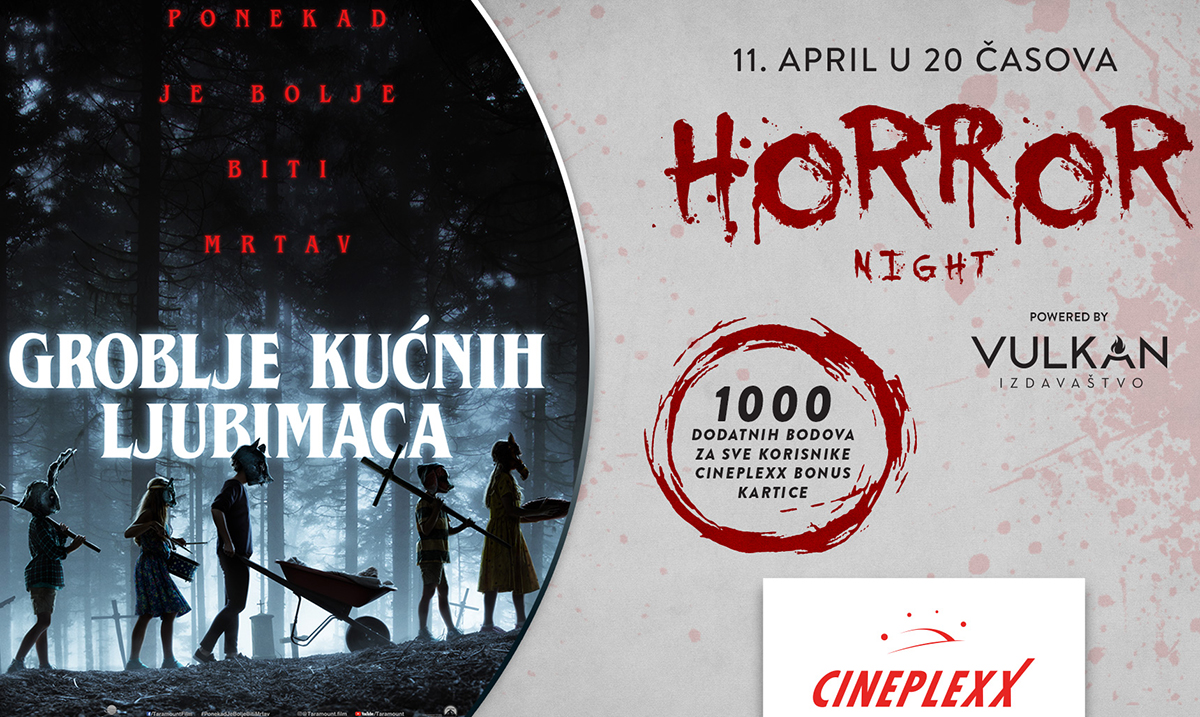 Saznajte šta se krije na misterioznom groblju kućnih ljubimaca, na Horror nightdogađaju u svim bioskopima Cineplexx. Posetioce, članove Cineplexx bonus kluba očekuje 1000 dodatnih bodova pri kupovini ulaznica za projekciju filma u četvrtak 11. aprila u 20 časova, a najsrećnije i poklon knjiga Stivena Kinga, koju daruje Vulkan Izdavaštvo. Karte su u prodaji nablagajnama bioskopa!