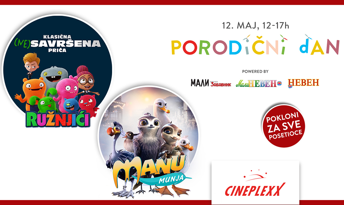 Poletite sa Manu Munjom u nove avanture, ili upoznajte stanovnike Ružnjićgrada u kom žive plišane igračke u nedelju, od 12 do 17 časova na Porodičnom danu u bioskopima Cineplexx. Uz kupljenu ulaznicu najsrećniji posetioci dobijaju poklon magazin za decu „Mali Politikin zabavnik”, „Mali Neven” ili „Neven”.