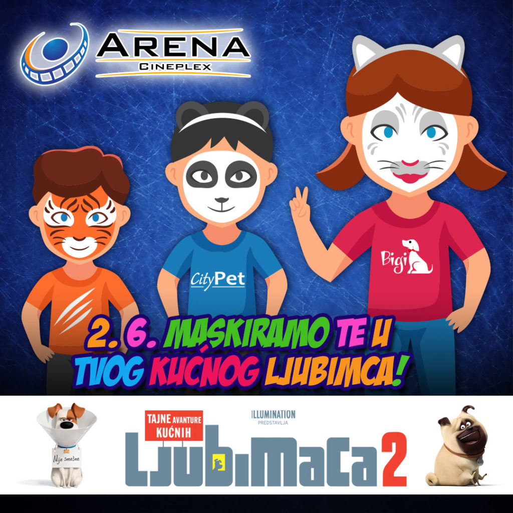 Opšte je poznato da u nekom momentu počnemo da ličimo na naše kućne ljubimce…ili oni na nas. Povodom pretpremijere animiranog filma „Tajne avanture kućnih ljubimaca 2“, pozivamo vas da se družite sa nama u bioskopu i povedete svoje ljubimce. Čuvena Vila četkica će oslikavati vaša lica kako biste još više ličili na vaše ljubimce a troje koji budu najviše slični svojim kucama, macama, hrčcima i drugim ljubimcima dobiće interesantne nagrade. Ukoliko niste u prilici da povedete ljubimce, pokažite nam vašu fotografiju sa njima i igra može da počne.