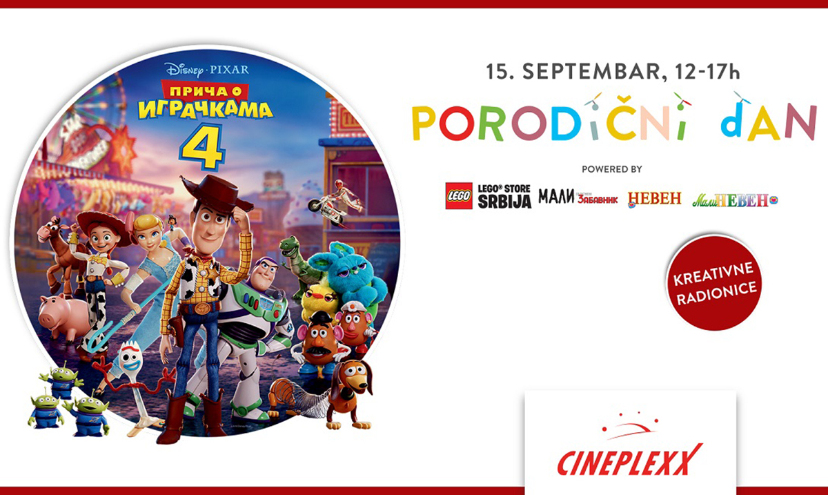 Vudi ima novi zadatak u četvrtom delu animirane avanture ,,Priča o igračkama“ uz koji ćemo se družiti na Porodičnom danu u nedelju 15. septembra od 12 do 17 časova u bioskopima Cineplexx Ušće Shopping Center, Cineplexx 4D Delta City i Cineplexx BIG Beograd. Sjajna zabava, mnogo radionica inspirisanih našim glavnim junacima i pokloni za najmlađe učiniće ovu nedelju nezaboravom! Karte su prodaji na blagajnama bioskopa.
