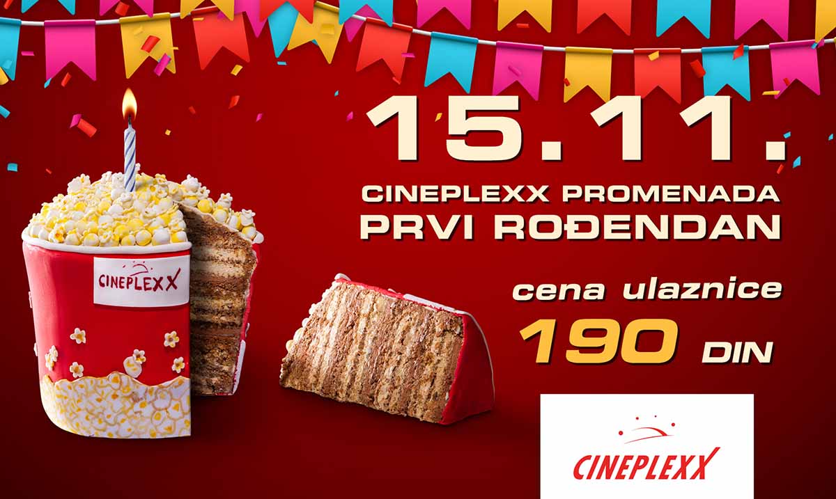 Beše to 15. novembra 2018. godine kada je bioskop Cineplexx Promenada otvorio vrata svojim posetiocima. Specijalni gosti te večeri bili su glumci i autori filma „Južni vetar“ a bioskop svečano otvorismo uz konfete, slavlje i sjajan ambijent. I tada odlučismo da ćemo svake naredne godine rođendan slaviti sa bioskopskim sladokuscima uz pravu slavljeničku atmosferu.